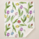 O design do produto apresenta um padrão de flores tulipas coloridas em roxo, vermelho, rosa, azul e amarelo. Esta ilustração botânica original faz um cobertor Sherpa moderno e único - Ideia presente para aniversário, Páscoa, Dia das Mães, casamento, e muito mais!