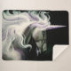 Perfil de um unicórnio branco com roxo no homem num pano de fundo de preto