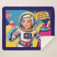 Vintage, desenho animado na década de 1950 de uma astronauta feminina com a citação "Vamos Ir Esmagar a Patriarquia". Você pode editar o texto usando a ferramenta design. Cores vibrantes e velozes, conteúdo generativo.