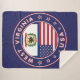 Crachá da Virgínia Ocidental com bandeira da Virgínia Ocidental e bandeira dos EUA cores, forma arredondada. Emblema da Virgínia Ocidental,
