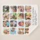 Crie um cobertor personalizado do keepsasasasasaké para sua avó com 16 quadros quadrados redondos segurando fotos de seus netos, família, animais de estimação, viagens ou outras memórias especiais e duas linhas de texto personalizável, como "We Love You Avó" e os nomes de seus familiares.