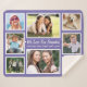 Dê uma guarida à vovó que ela vai tesourar durante anos com este cobertor de colagem de 8 fotos roxas. Você pode personalizar com fotos da família de netos, filhos, animais de estimação etc., em quadros brancos. Você também pode personalizar a expressão para "Eu te amo" ou "Nós te amamos", quer ela seja chamada de "vovó", "vovó", "mamã" etc., e adicionar os netos e outros nomes, todos em letras brancas e tipografia.
