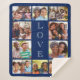 Um cobertor de marinho azul de colagem de fotos mantém sherpa que sua avó vai tesourar e curtir por anos. Personalize com 10 fotos de seus netos e família. "AMOR" está escrito no meio na elegante tipografia branca.