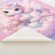Cobertor Sherpa Whimsical Kawaii Pastel Unicorn & Friends On Cloud
