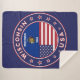 Crachá de Wyoming com bandeira de Wyoming e bandeira de cores dos EUA, forma arredondada. Emblema de Wyoming. Selo de Wyoming. Coleção dos Estados Unidos.