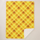 Um cobertor sherpa de grande porte com um padrão brilhante e alegre de xadrez design em amarelo-gema de ovo.