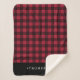 O cobertor de sherpa cônico russo apresenta um padrão clássico de xadrez de búfalo em vermelho e preto. Personalize com um nome ou nome de família na parte inferior.
