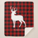 Cobertor Sherpa Xadrez de Buffalo Vermelho e Veado Branco | Nome p