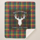 Nome da família, localização e ano estabelecidos, xadrez verde amarela Buchanan com silhueta de cervo Sherpa cobertor