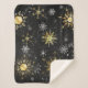 Cobertor Sherpa Xmas Golden Snowflakes on Black Background