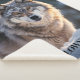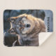 Este cobertor de arremesso de sherpa é mostrado numa impressão de foto de um lobo selvagem. Texto de Yellowstone escrito perto do fundo. Personalize este item ou comprar conforme projetado. Imagem licenciada