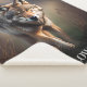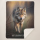 Este cobertor do lama de sherpa é mostrado em uma impressão de foto de um lobo. Texto de Yellowstone escrito perto do fundo. Personalize este item ou comprar conforme projetado. Imagem licenciada