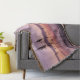 Um belo pôr do sol roxo e laranja sobre o oceano Atlântico e a Aveia do Mar e a grama balançando suavemente em primeiro plano.