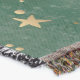 Sol e lua de ouro celestial, e estrelas sobre fundo verde.