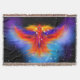 Fiery phonix voando pelo espaço em uma nuvem nebulosa azul e roxa. O cintilante aglomerado de estrelas que coroam a cabeça mítica de ave forma a constelação de fênix. Orientação horizontal. ♡ Idyllfire