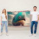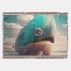 Whale sculpture on the beach, in the style of rendered in cinema4d, surrealistic grotesque, dreamlike illustration, dark cyan and green, concept art, gigantic scale, fish-eye lens
