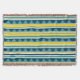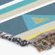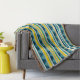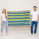 Triângulos azuis, amarelos e brancos e listras de bom humor interior jogam cobertor.