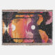 Um pôr do sol vibrante ilumina uma floresta encantada, com árvores coloridas silhuetas contra um céu crepúsculo. O lago sereno reflete a beleza das montanhas e o horizonte brilhante, criando uma cena tranquila e mágica.