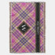 Design de cor rosa, ouro amarelo e azul-tartan. Um padrão perfeito. Texto personalizado e monograma.