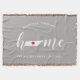 Show some home state pride with this cute rustic gray throw blanket featuring "home" in white calligraphy script lettering with a silhouette map of the state of Tennessee standing in for the letter "O." A red heart illustration inside the state map completes the design; you can change the position of the heart to your home city by opening the design tool and dragging the heart shape to your favorite spot. Personalize with your home city, family name and year established to create a perfect and memorable housewarming gift or addition to your new home.