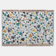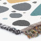 Um design de estilo terrazzo com formas aleatórias em vários tamanhos e cores.