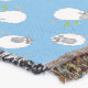 Uma cobertura do lance a personalizar, com um teste padrão de carneiros cómicos, em um fundo dos azul-céu. De uma ilustração lunática por Judy Adamson, você pode personalizar a escala do teste padrão dos carneiros.