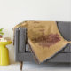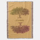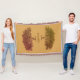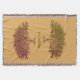 Oak tree is mirrored across central line of blanket. Personalize with family name between the images. Brown and Green tinted leaves with Brown text on a tan background.