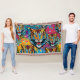 Cobertor Tiger Head Rainbow colors paint stains
