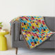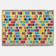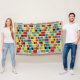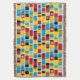 Um design composto por faixas com bandas pintadas à mão, blocos e manchas de cor em tons de vermelho, âmbar, ouro profundo, azul, cinza preto e branco. Inspirado por totens pintados.