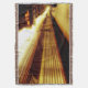 Na fotografia original de ZoeSPEAK neste cobertor de lama, os passageiros à distância que desembarcam do comboio pararam na via 2. A luz do sol brilhante atinge o topo do trem de metal brilhante, e uma placa com a data e a hora pode ser vista pendurada sob o telhado da plataforma, com o resto do trem e da plataforma na sombra.