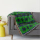 Cobertor Traços e formas azuis e verde, quase listrado.
