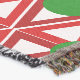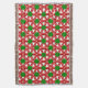 Este cobertor de lama tem um design geométrico de repetição de triângulos vermelhos e profundos com círculos verdes em cima de um campo esbranquiçado. Quer o mesmo design em cores diferentes? Me mande mensagem.