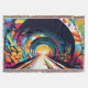 Uma pintura digital vibrante do Túnel Tran i. O túnel está coberto de grafites coloridos. A pintura captura a beleza e a energia do túnel