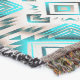 Esse design apresenta um padrão geométrico com forma de diamante repetida com bordas borradas e revestidas radiando para fora. O efeito geral combina simetria, energia e profundidade — um equilíbrio entre o sentimento tribal e a geometria moderna na turquesa, cinza e creme.