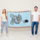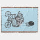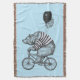 Características deste design um urso que veste uma camisa listrada que entrega balões em sua bicicleta.