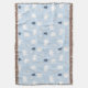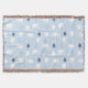 Ursos polares fofinhos cercados por árvores de Natal e flocos de neve contra fundo azul-gelo