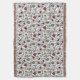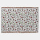 Este cobertor de natal sazonal apresenta um belo padrão desenhado à mão de crânios e galhadas de veados adorados com rosas vermelhas, flores de poinsettia e plantas de cacto contra um fundo branco moderno.