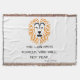 Este cobertor apresenta uma design que mostra a Escritura de bíblia "Amos 3:8" da bíblia Rei James em uma letra básica de impressão afiada com letras negras mostrando a cabeça de um leão acima do verso neste tema de bíblia baseado na fé. Este cobertor é feito com 75% de algodão e 25% de poliéster com uma lavagem manual muito macia recomendada.