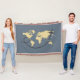 Ilustração de viagem de vamos de com mapa mundial e decoração de avião em fundo azul para todos que gostam de viajar.