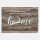 Mostre algum orgulho de sua cidade com este bonitinho robusto cobertor de madeira moída, apresentando "casa" em letras brancas de escrita em caligrafia com um mapa da silhueta de Cape Cod em pé para a letra "O". Um dentro cor-de-rosa para ilustração cardíaca no mapa do estado completa o design; você pode mudar a posição do coração para sua cidade natal abrindo a ferramenta design e arrastando a forma do coração para seu lugar favorito. Personalize com a sua cidade natal, o nome da família e o ano estabelecidos para criar um presente perfeito e memorável de inauguração ou adição à sua nova casa.