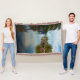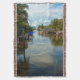 Relaxe com a calma e tranquila vista sobre este cobertor de lama. Esta fotografia original de ZoeSPEAK é uma longa vista de um canal em Fort Meyers Beach, Estero Island, Florida. Na extremidade oposta da via navegável, perto do horizonte, está a ponte para o continente. O céu azul está cheio de nuvens brancas puffy, árvores tropicais e barcos que alinham o canal, e um reflexo da bela cena completa esta imagem de vida costeira.
