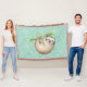 Um gráfico de aquarela adorável apresenta preguiças sorridentes de um galho em aqua e fundo dourado