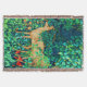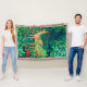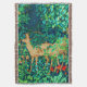 Jogue cobertor em um design de cervo da tapeçaria William Morris em um cenário de floresta de fantasia - veado bronzeado em um fundo azul, profundo e verde de folhas e flores, acentuado com tulipas vermelhas