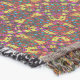 Um padrão caleidoscópico vibrante apresenta formas geométricas complexas em vermelho, amarelo, azul, verde e roxo. Os motivos repetidos criam uma sensação de simetria e movimento, parecendo um mosaico colorido ou design de vidro colorido.