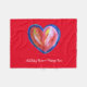 Um coração vermelho colorido com sotaques brancos e dourados. O coração está esboçado em azul com um fundo verde macio. Esta pintura cardíaca é uma homenagem a manter a esperança dentro do seu coração quando os tristes azuis estão à sua volta, mas a insistir na renovação verde. Faça cobertores de velo personalizados para você ou como presente para um ente querido. Personalize o cobertor com sua própria mensagem.