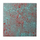 Esta telha de cerâmica é uma bela mistura de arte e arquitetura, exalando uma elegância antiga que é ao mesmo tempo atemporal e contemporânea. Ela apresenta um padrão intrincado que combina elementos de desenhos florais e geométricos. As cores primárias são azul-turquesa e vermelho, criando um contraste vibrante visualmente impressionante. O fundo azul-turquesa serve como uma tela para os motivos ornamentais vermelhos, que são meticulosamente arranjados para formar um padrão harmonioso. O design é ainda mais aprimorado por manchas cinzas espalhadas por toda parte, adicionando textura e profundidade à estética geral. O estilo da telha lembra telhas decorativas tradicionais ou antigas, frequentemente encontradas em palácios ou mesquitas antigos. Apesar de seu apelo vintage, a telha pode complementar vários estilos de interiores, de clássicos a modernos, graças ao seu design versátil e esquema de cores.