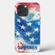 Proteja seu iPhone em estilo com nossa capas de iphone patriótica. Mostre seu orgulho americano com o design vermelho, branco e azul enquanto mantém seu telefone seguro de arranhões e altos. Celebre o dia 4 de julho com este caso elegante e durável que gritar o patriotismo! Personalizado com o nome.
