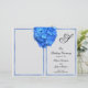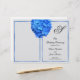 Cobrir de programa floral azul dobrado para uma cerimônia de casamento. Flor azul de hydrangea bonito na frente com texto preto que inclui um grande monograma inicial no topo. Os quadros azuis correspondentes incluem o texto e o que será a parte traseira do programa. O papel de 8,5 x 11 polegadas tem upgrades opcionais e é impresso em um lado apenas, para dobrar após a compra.