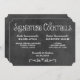 Os coquetéis de assinatura personalizados recomendados pela noiva e noiva apresentam duas receitas de bebida e um monograma de casamento. Detalhes de rolagem do script e do coração. Estilo de escrevendo de giz branco sobre fundo com uma aparência texturizada de quadro negro.