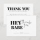 Transforme cada pacote na sua próxima venda. Este cartão de agradecimento "Hey Babe" combina tipografia editorial ousada com código de desconto totalmente editável, espaço para logotipo e campo de site — projetado para boutiques, vendedores do Etsy e pequenas empresas femininas que desejam inserções de embalagem que sejam tão boas quanto o produto dentro.